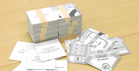 グループワーク(パッケージ教材)は、研修受講者が主体的に学びを得ることができるように、ビジネスシーンで起こりうる活動プロセスを構造化したものです。一つひとつの教材に、実施の目的があり、研修を企画する際のパーツとしての利用が容易。また、ファシリテーターとしての経験値による受講者の学びの差が出にくく、初心者の方でも容易に実施できます。そして何より楽しく学べる教材であることから、受講者が主体的に参加でき、さらには学びの成果をすぐに仕事現場で活かせるのも特徴となっています。これまでに蓄積した教材開発の経験を活かし、オーダーメイドの教材の開発も行っています。