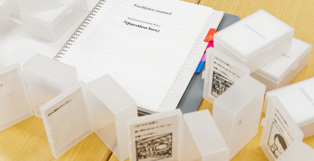 グループワーク(パッケージ教材)は、研修受講者が主体的に学びを得ることができるように、ビジネスシーンで起こりうる活動プロセスを構造化したものです。一つひとつの教材に、実施の目的があり、研修を企画する際のパーツとしての利用が容易。また、ファシリテーターとしての経験値による受講者の学びの差が出にくく、初心者の方でも容易に実施できます。そして何より楽しく学べる教材であることから、受講者が主体的に参加でき、さらには学びの成果をすぐに仕事現場で活かせるのも特徴となっています。これまでに蓄積した教材開発の経験を活かし、オーダーメイドの教材の開発も行っています。
